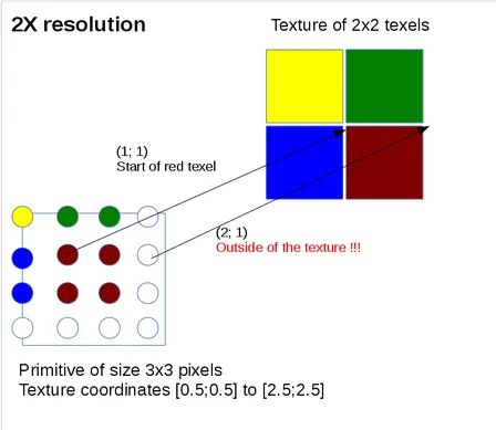 Now let's explain the other new hack. Primitives have only color information - this is enough for a small surface but not efficient to draw a big surface. In order to reduce computational load they just map a texture on to the primitive. You just need to provide the texture coordinates. Instead of a lengthy explanation, let's just use an example.