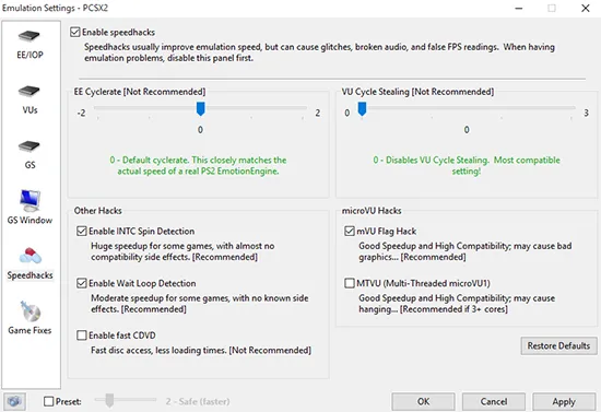 You can now manipulate the EE Cyclerate to overclock and underclock the Emotion Engine's R5900 Core CPU clock speed, The negative values on the slider allow you to reduce the clock speed and conversely the positive values effectively increase the clockspeed.
