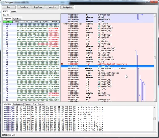 The new debugger features a live disassembly view and allows developers to debug games way easier than before while being very useful feature in assisting the debugging of games which aren't working properly. Its main purpose is aiding in game hacking, translation patches for example. list of Keyboard shortcuts for the debugger functions can be found at docs/debugger.txt .