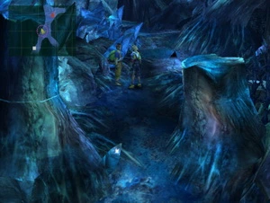 Look at the weird line on the tree (bottom left) and the black triangle that is right of Tidus.