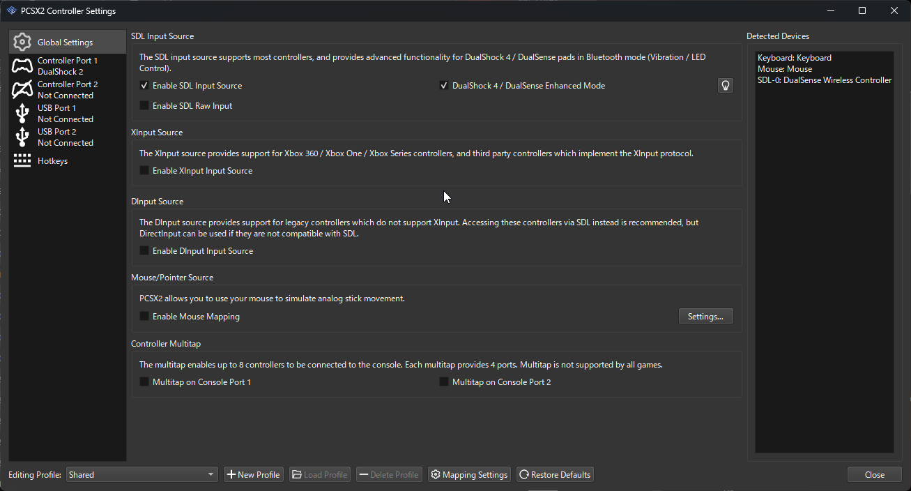 3. Enable the SDL Input Source in PCSX2, if it is not already.